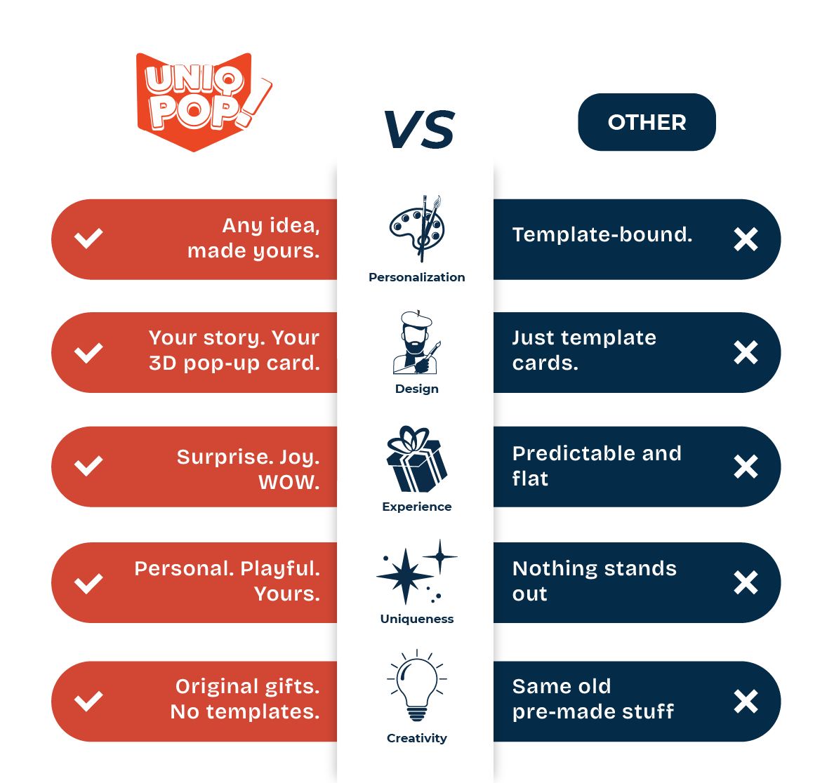 Welcome to the Guild of Anti-Boring Gift Artistry! 🦊✨ We're not just another card company – we're rebels fighting against the tyranny of boring, cookie-cutter gifts. Every UNIQPOP creation is: