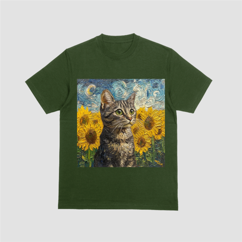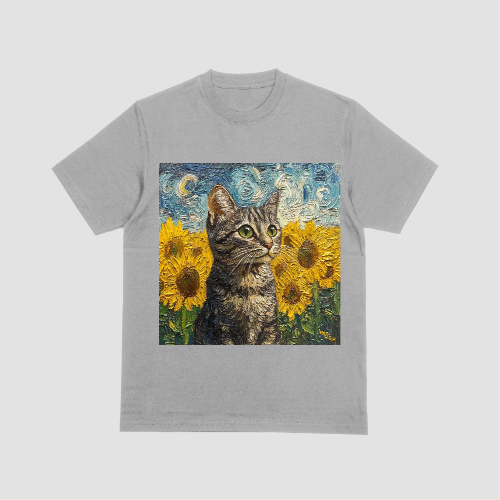 Custom Pet Portrait Van Gogh Style T-Shirt - Personalized Cat Dog Art Painting
